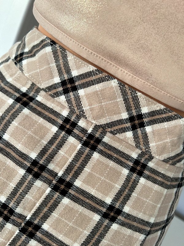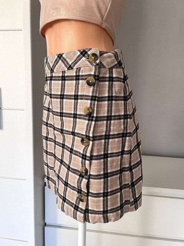 Spódniczka marki h&m linii divided. Dopasowana w talii, zapinana na guziki. Ma piękną kratkę. Piękny beżowy i czarny kolor sprawiają, że idealnie pasuje do szafy kapsułowej. Wykonana w 100% z bawełny, nadaje się idealnie na lato.