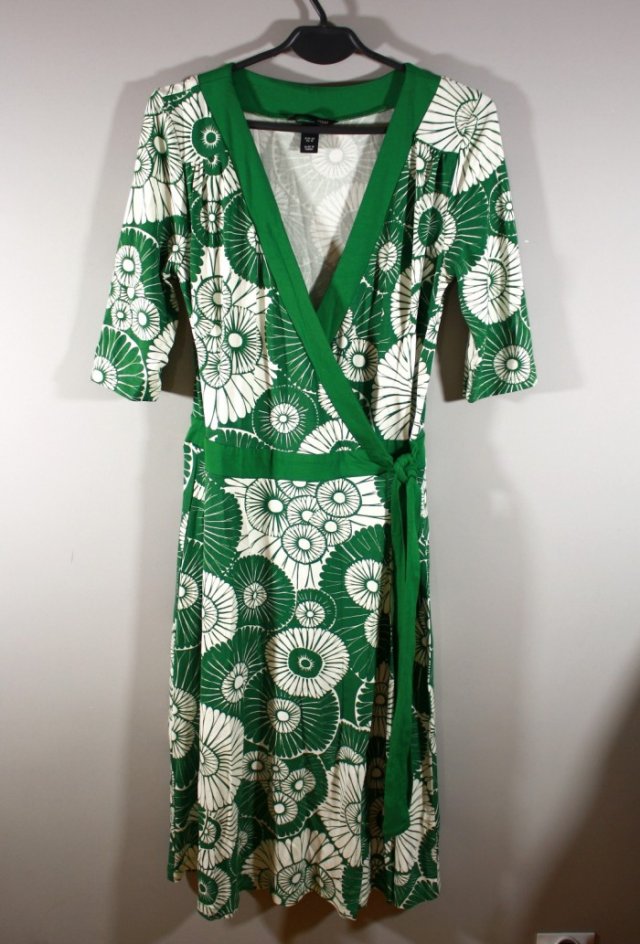 Śliczna sukienka od H&M , zakładana kopertowo , od spodu na guziczek , po wierzchu wiązana .