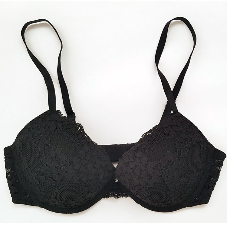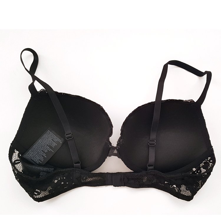 Koronkowy biustonosz push-up. Usztywniane miseczki na fiszbinach powiększają biust i tworzą pełniejszy dekolt. Zapięcie na haftki z tyłu (haftki podwójne, w trzech rzędach zapewniających regulację).