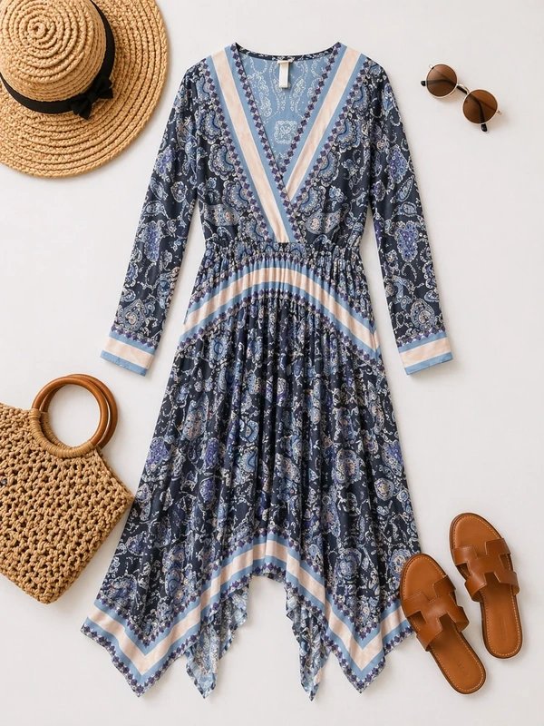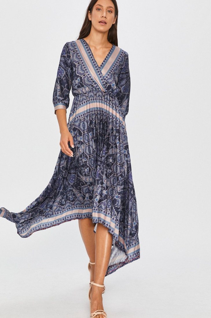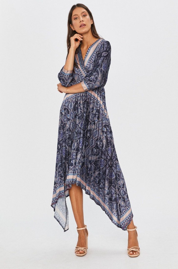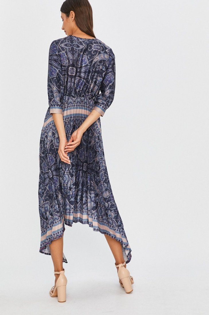 Midi niebieska asymetryczna sukienka we wzory damska rozmiar S