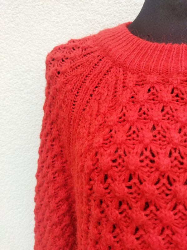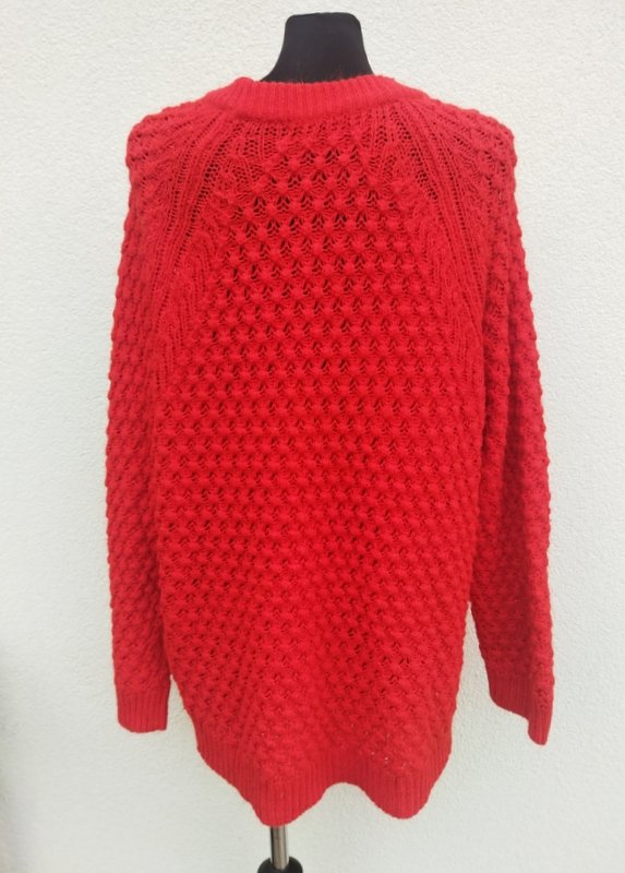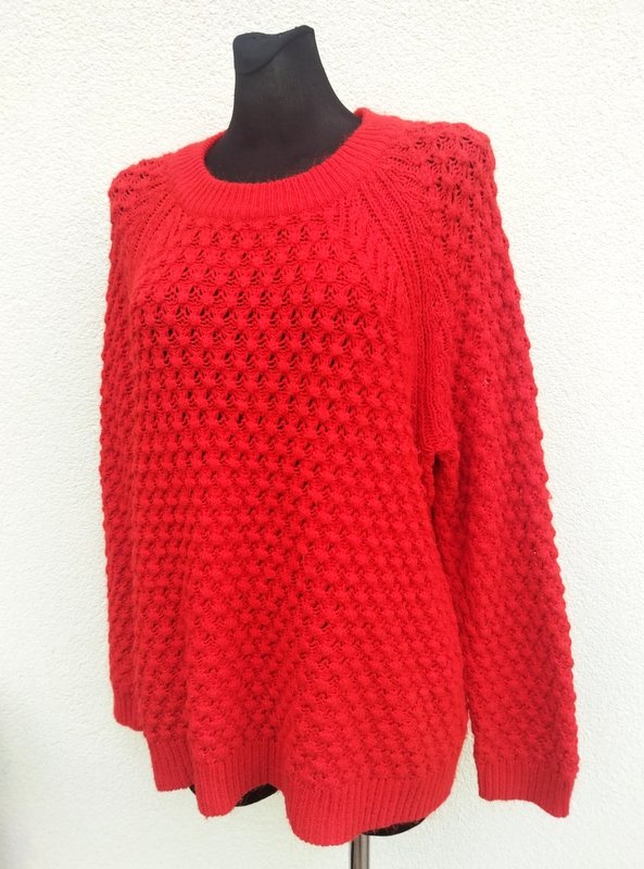 Ładny sweter z akrylowej włoczki w czerwonym kolorze z Owalny dekolt, raglanowe rękawy . Wykończony ściągaczami