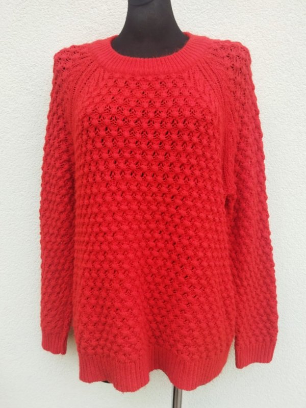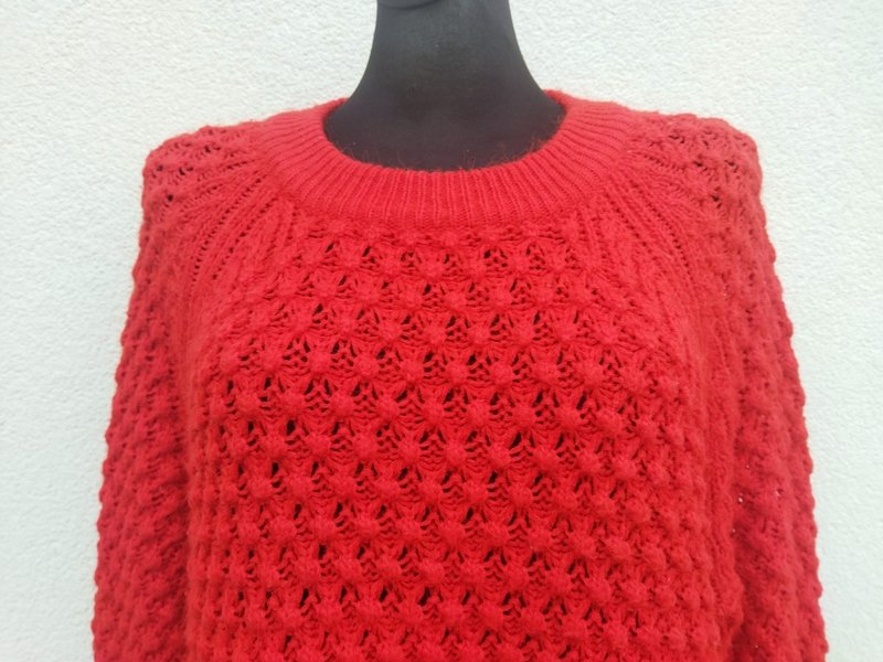Ładny sweter z akrylowej włoczki w czerwonym kolorze z Owalny dekolt, raglanowe rękawy . Wykończony ściągaczami