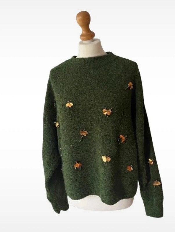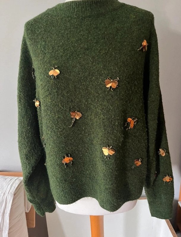 H&M zielony sweter w złote ważki pszczoły ???? owady Oversize