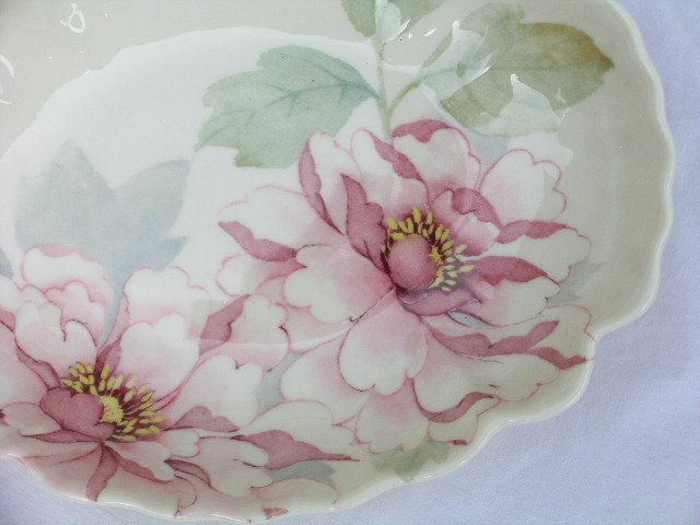 Ekskluzywna, elegancka, duża mydelnica łazienkowa. Jakość błyszczącej, ecru prześwitującej porcelany i wysmakowane różane zdobienie w dobrym, angielskim stylu. Klasyczny kształt z finezją :) Sygnowana Hadida. 17 x 13 x 3,5 cm. Stan zachowania bardzo dobry. Rzadkość i wysoka klasa :)