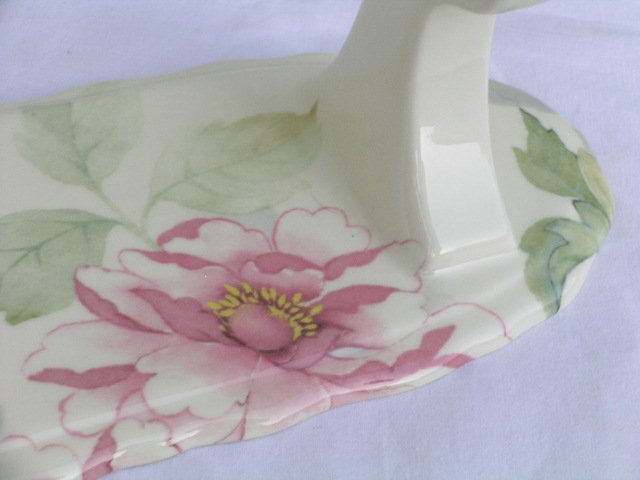 Ekskluzywny, elegancki wieszak łazienkowy na papier. Jakość błyszczącej, ecru prześwitującej porcelany i wysmakowane różane zdobienie w dobrym, angielskim stylu. Klasyczny kształt z finezją :) Sygnowany Hadida. Plastikowy wkład sprężynowy. 24 x 9,5 x ponad 9 cm. Stan zachowania bardzo dobry. Rzadkość i wysoka klasa :)
