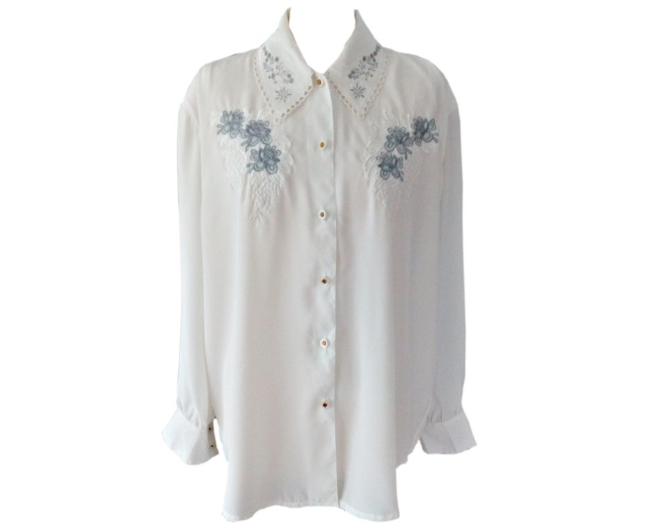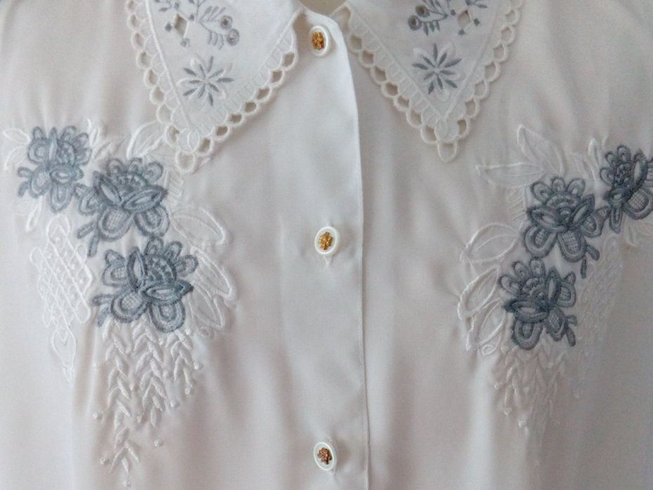 Dłuższa, przewiewna bluzka vintage z pięknym haftem przy kołnierzyku. Jedyna w swoim rodzaju, pełna elegancji vintage.