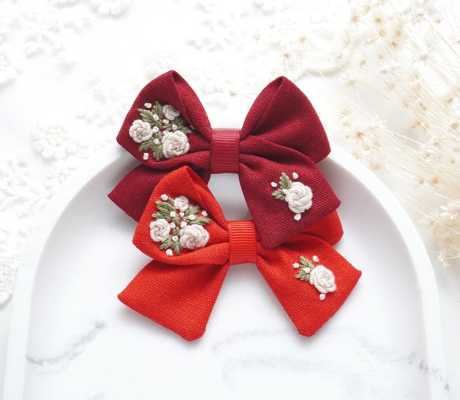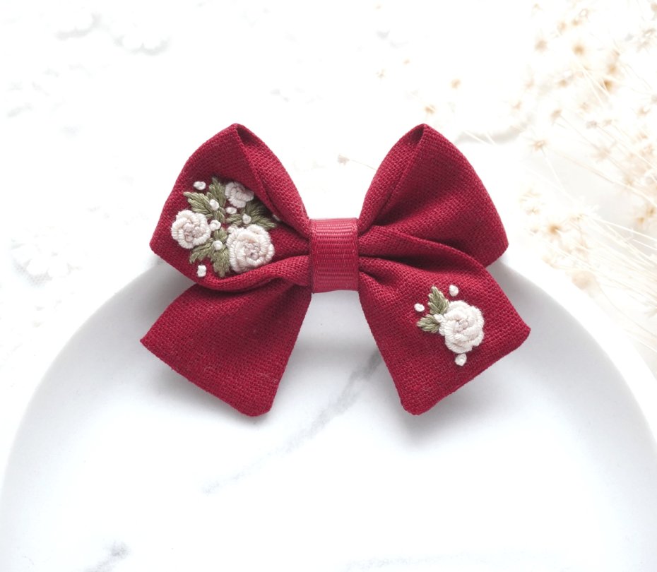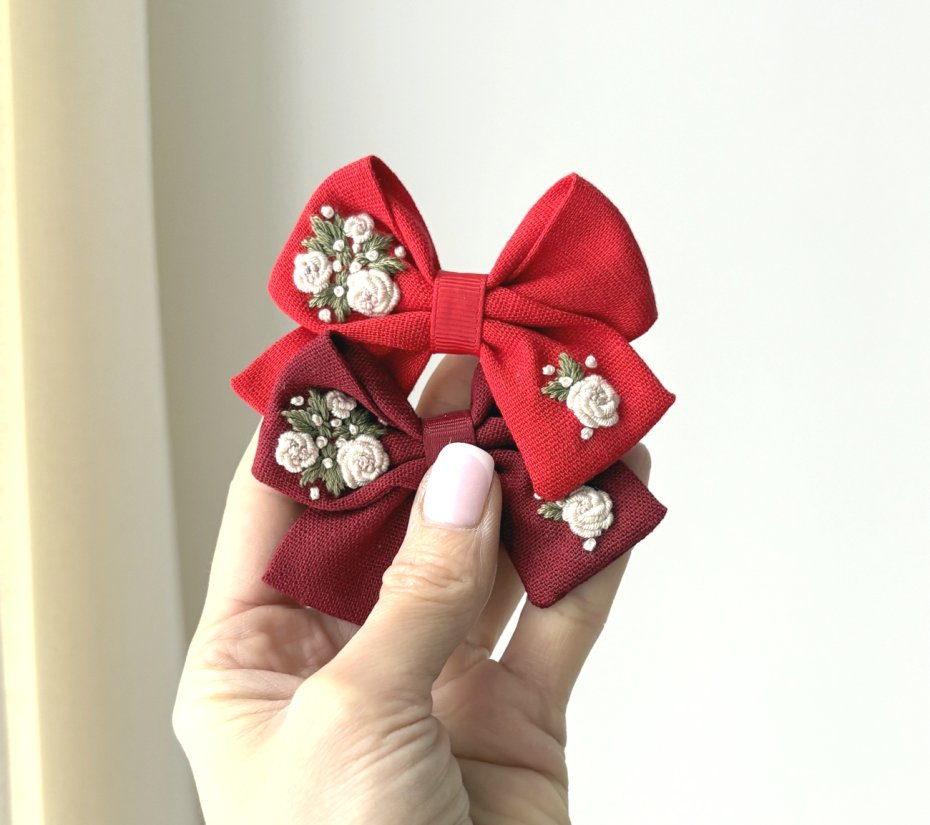 HAFTOWANA Spinka / opaska do włosów świąteczna kokarda BORDOWA | HSK48