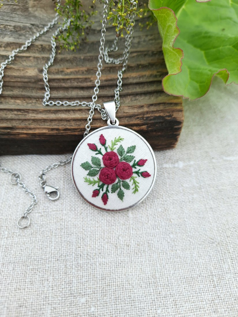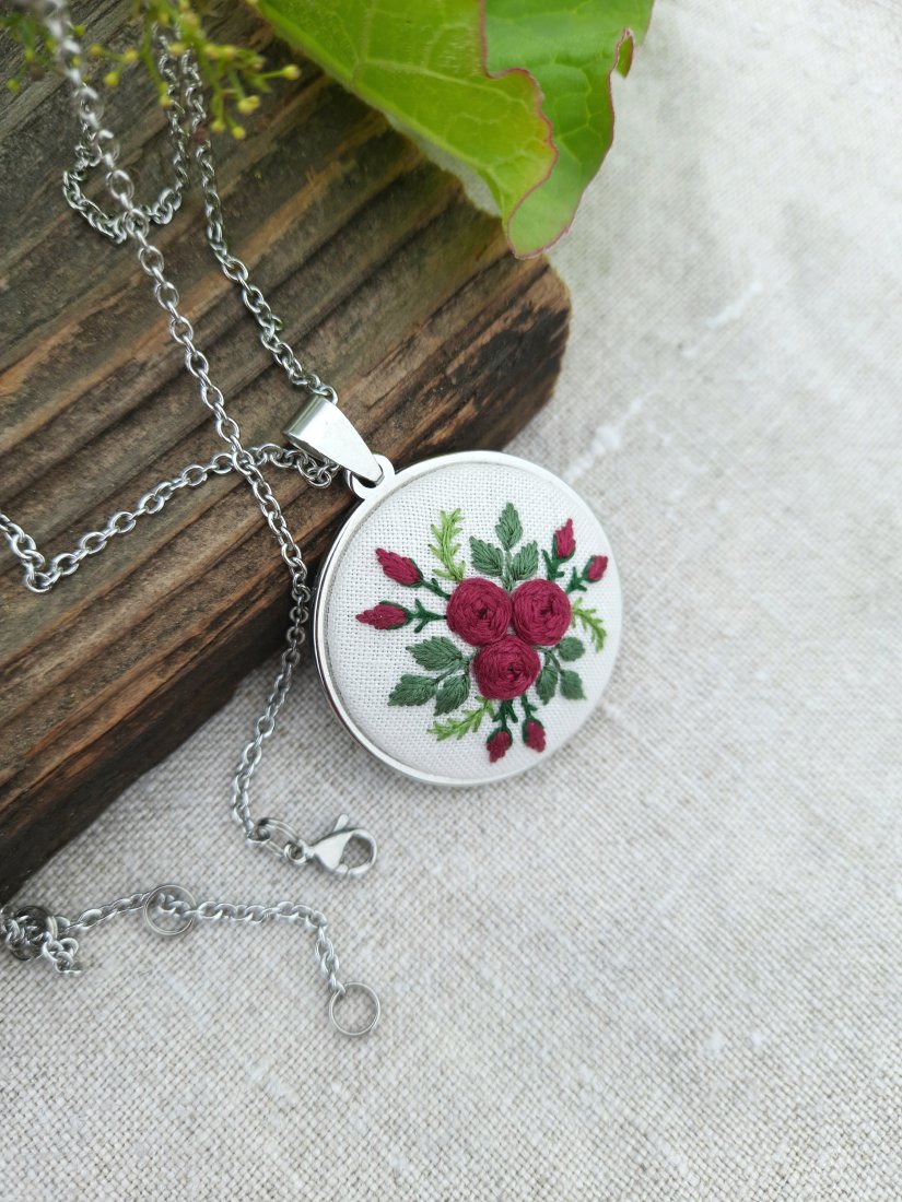 Tagi: #haft ręczny, #haftowana biżuteria, #haftowany wisiorek, #kwiatowa w kwiaty