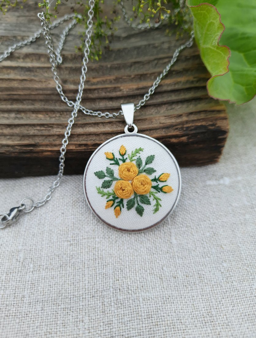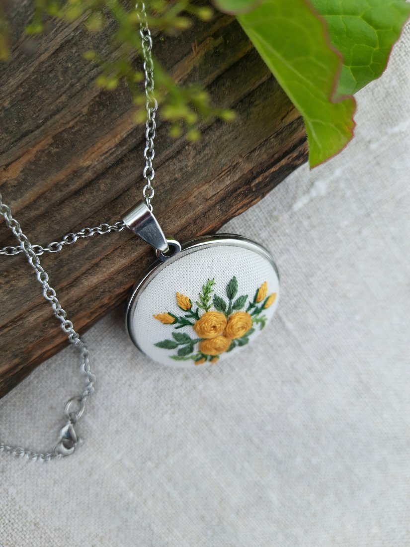 Tagi: #haft ręczny, #haftowana biżuteria, #haftowany wisiorek, #kwiatowa w kwiaty