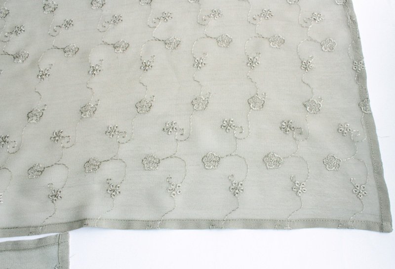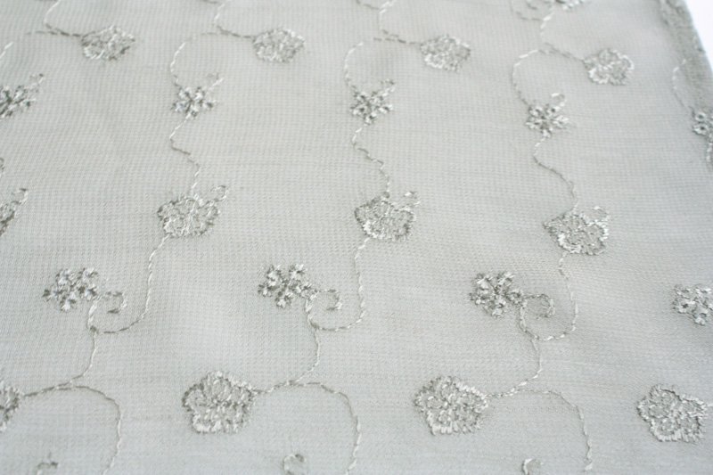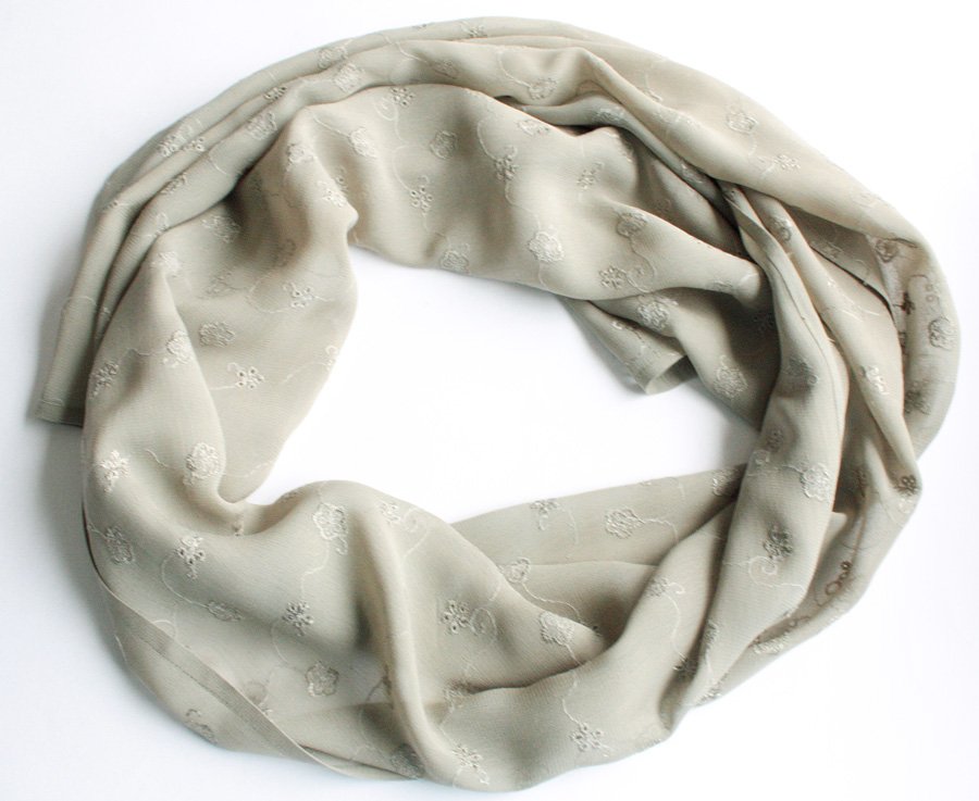 Piękny, zwiewny, haftowany szal w kolorze jasnej oliwki.