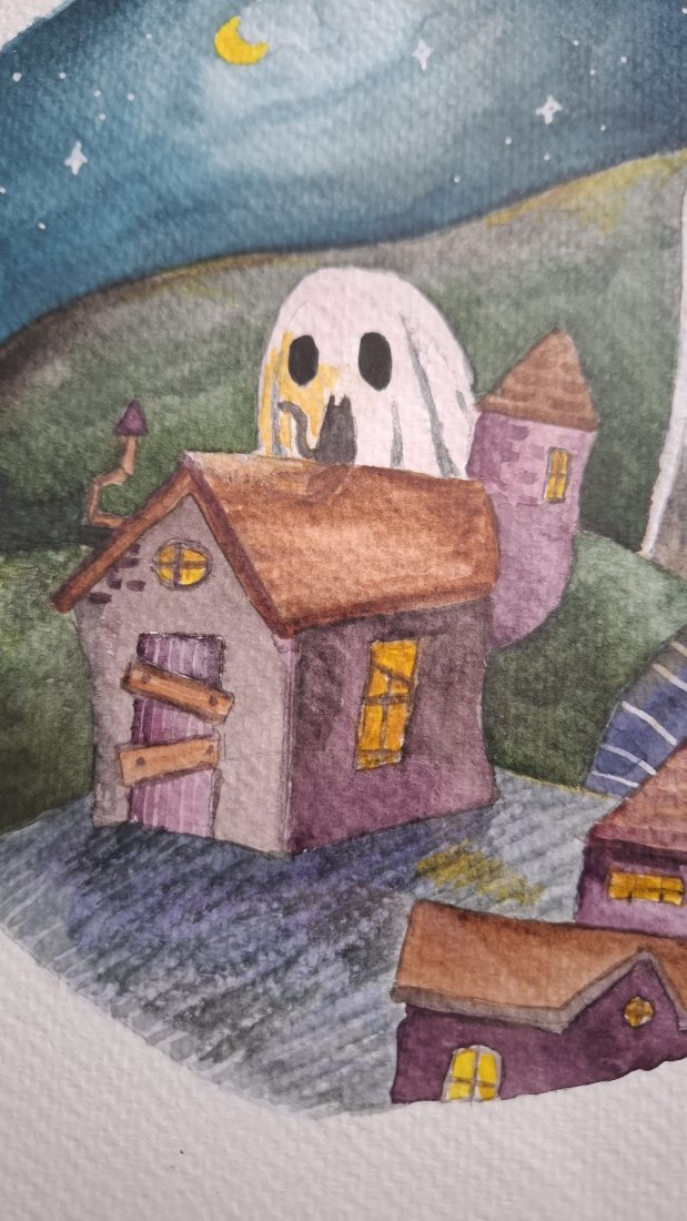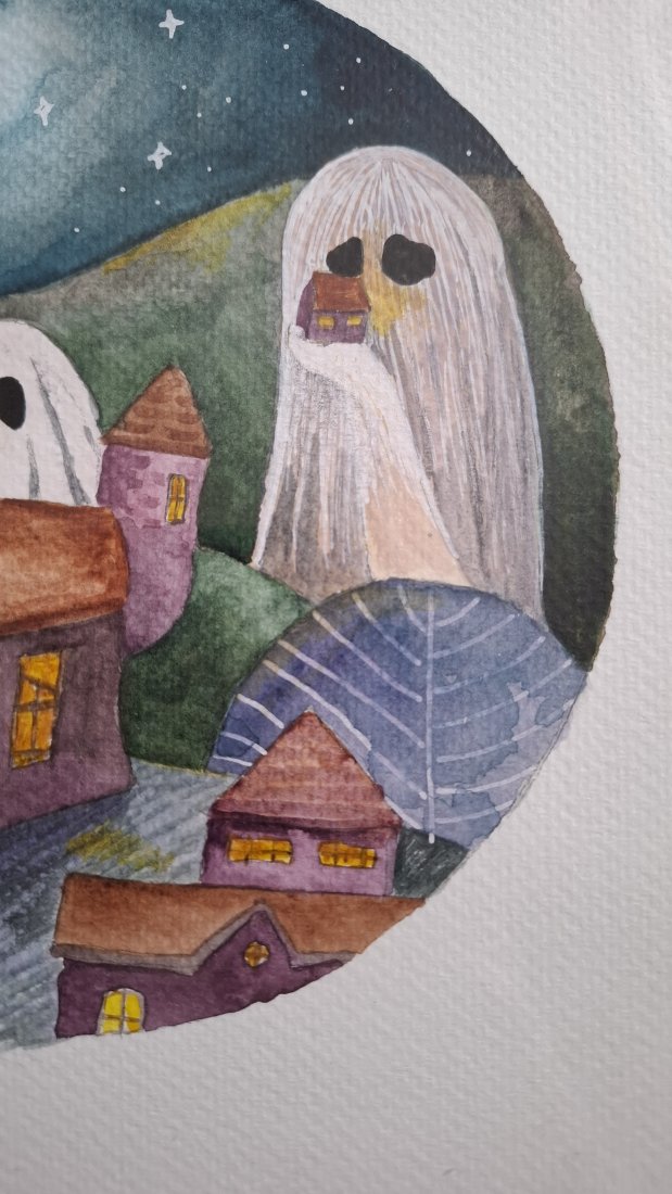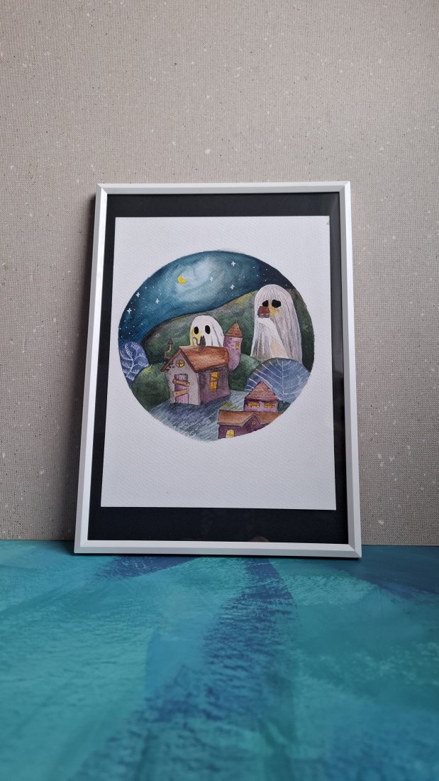 Jedyna I wyjątkową grafika wykonana farbami akwarelowymi. Dla fanów halloween i jesiennych klimatów. Ilustracja jest gotowa do zawieszenia w ramce.