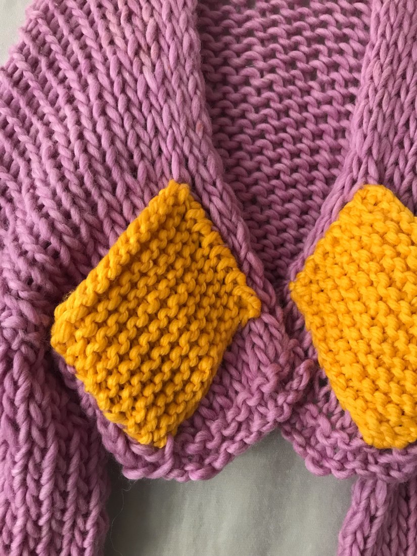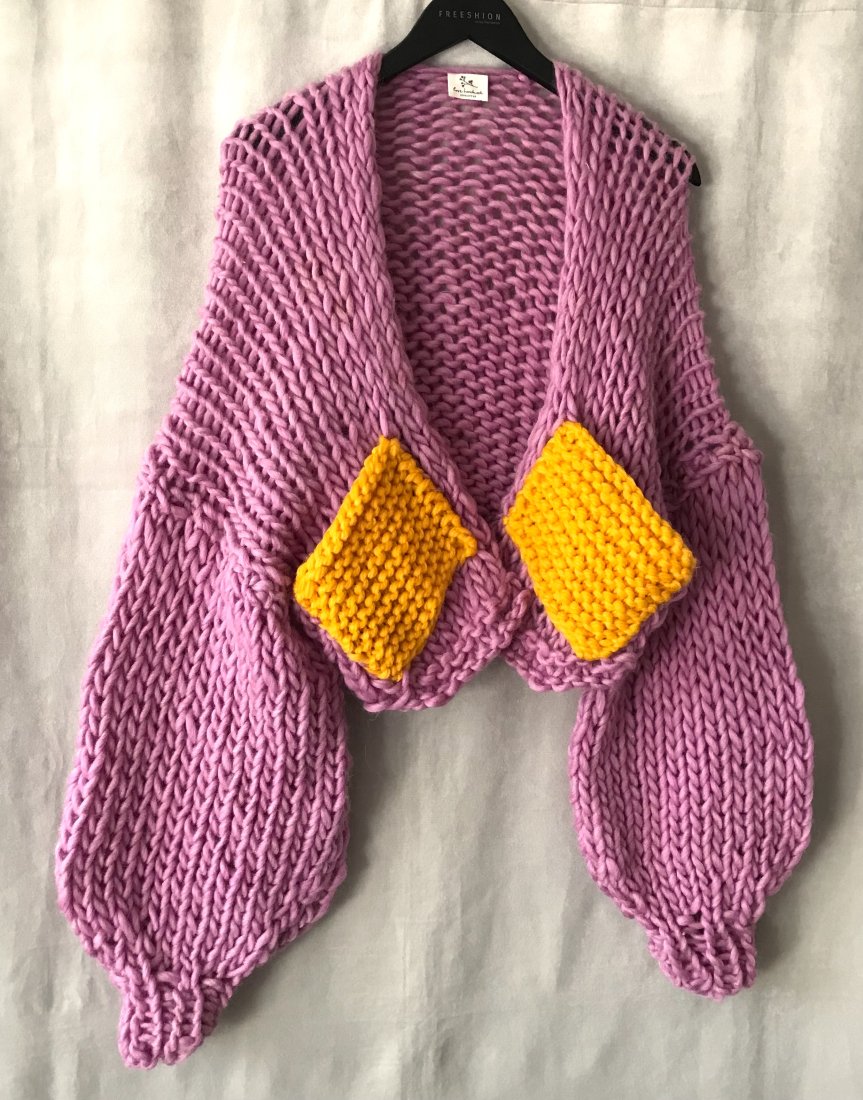 Polecam przepiękny sweter hand made, wykonany z miękkiej wełny. Fason oversize z długimi s rękawami, naszyte kontrastowe kieszenie.. Idealnie sprawdzi się do wiosennych stylizacji. wełna, poliakryl wymiary; długość; 54 cm biust; do 126 cm długość rękawa od szyi; 82 cm szerokość rękawa; 40 cm