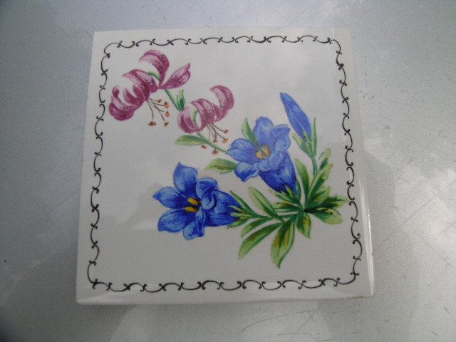 Ceramiczny Ozdobny Kafelek z założenia podstawka pod kubek,ale do wklejenia,czy na ścianę powieszenia jako obrazek wielce się nada,bo dekoracyjny i miły dla oka :)