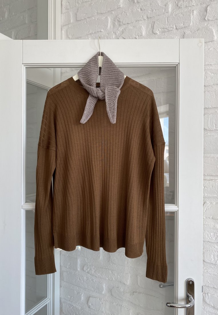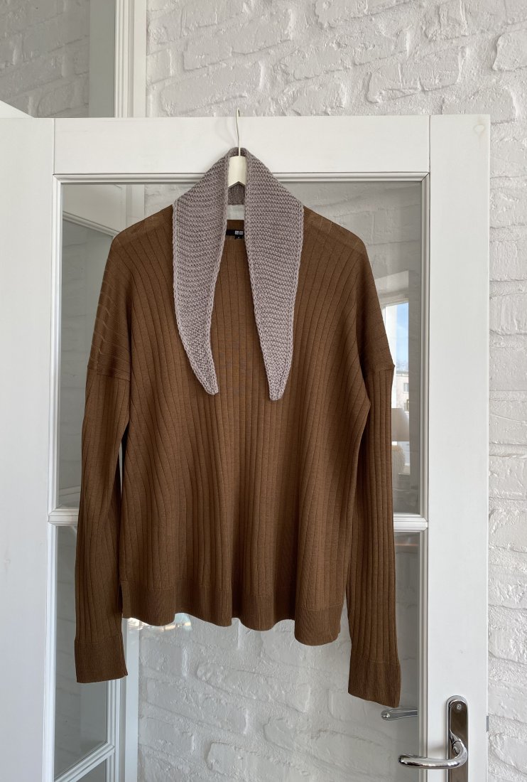 Wykonany ręcznie na drutach wełniany szalik, który dobrze ogrzewa szyję oraz jest uroczym detalem w stylizacji.