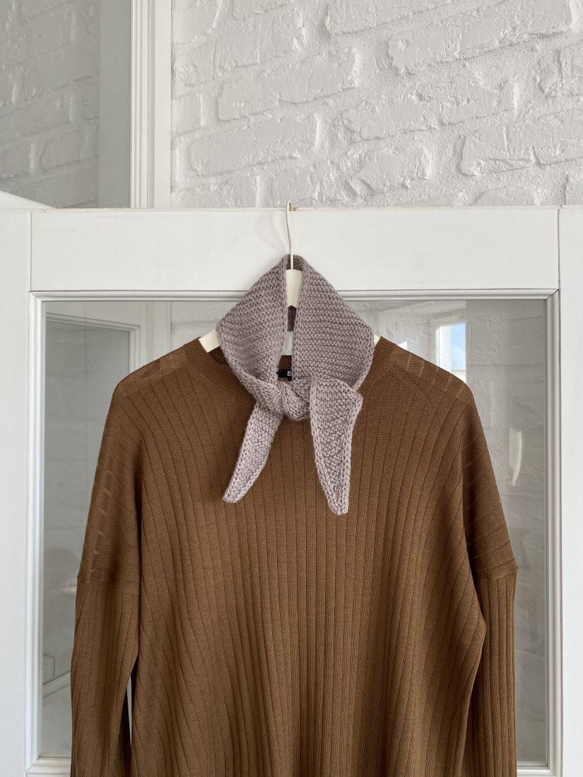 Wykonany ręcznie na drutach wełniany szalik, który dobrze ogrzewa szyję oraz jest uroczym detalem w stylizacji.