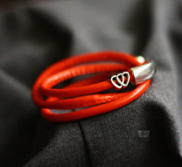 Intrygująca bransoletka trzykrotnie owijana wokół nadgarstka wykonana z ekologicznego szytego mięciutkiego rzemienia (śr. ok. 6 mm) , oraz elementów z metalu antyalergicznego (wolne od ołowiu i niklu) w kolorze srebra . Bransoletka pięknie prezentuje się na nadgarstku , elementem ozdobnym jest tutaj designerskie duże wyprofilowane zapięcie , które świetnie dostosowuje się do nadgarstka . Biżuterie wysyłam w ozdobnym bezpiecznym opakowaniu . Bransoletka pasuje na nadgarstek 15 cm - 16 cm .