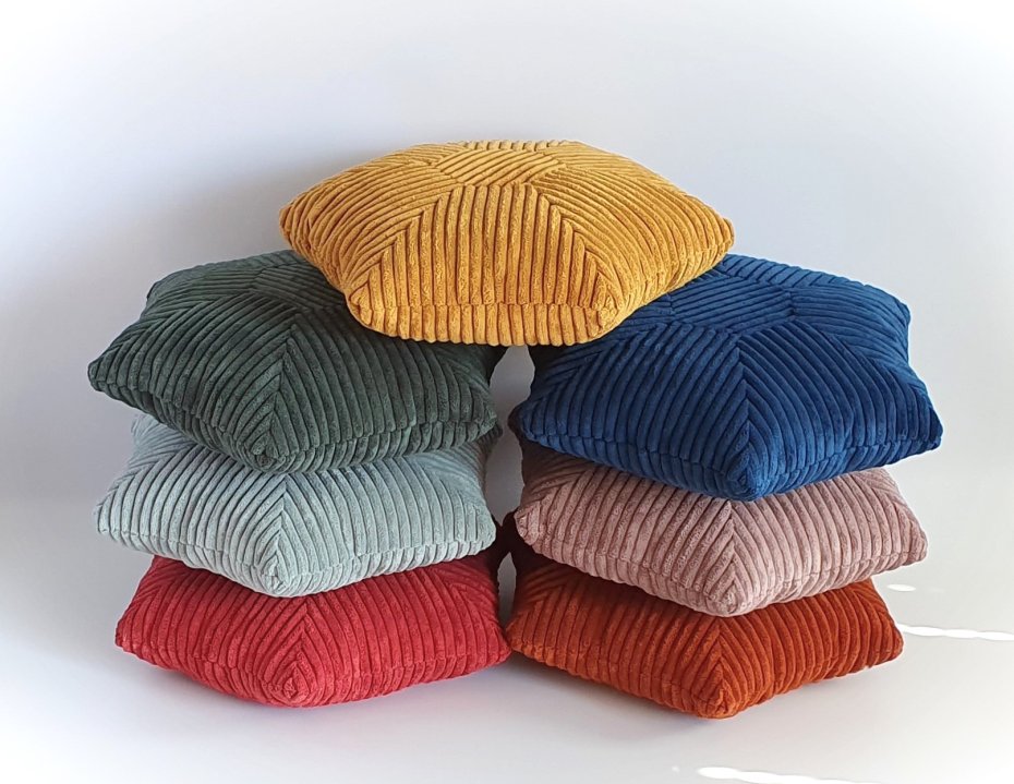 Poduszka jest szyta z obiciowego sztruksu z piankowym wypełnieniem, dlatego może mieć szerokie zastosowanie funkcjonalne. Będzie dobrze wyglądała w salonie, pokoju młodzieżowy czy dziecięcym