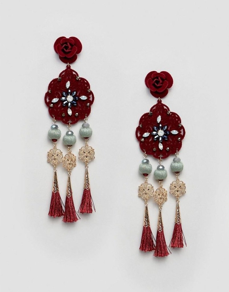 Długie kolczyki zdobione cyrkoniami i frędzlami, nowe.