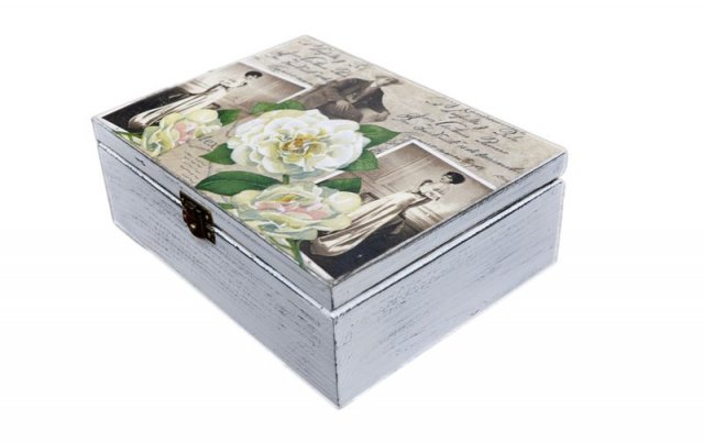 Herbaciarka malowana farbami akrylowymi, postarzona specjalną techniką i zabezpieczona lakierem bezbarwnym.