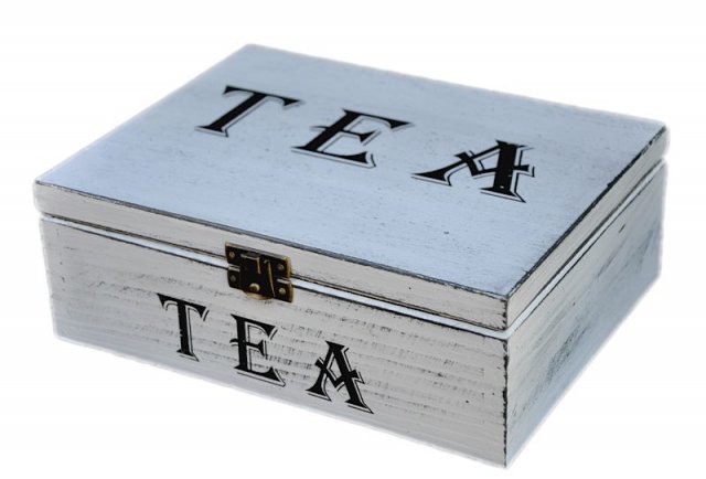 Herbaciarka malowana farbami akrylowymi, postarzona specjalną techniką i zabezpieczona lakierem bezbarwnym.