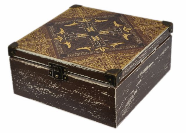 Herbaciarka malowana farbami akrylowymi, postarzona specjalną techniką i zabezpieczona lakierem bezbarwnym.