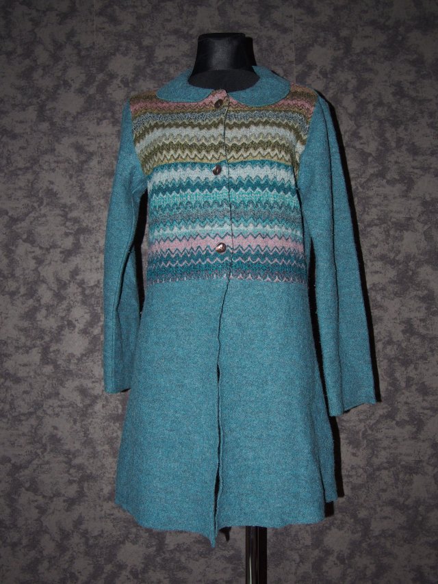 Piękny wełniany cienki płaszczyk marki Himalaya. Płaszczyk jakości bardzo dobrej, z wyższej półki. Jest cieniutki więc może być też używany jako długa bluza. Niesteyty nie ma metki z materiałem, ale wydaje mi się, że jest to wełna lamy.