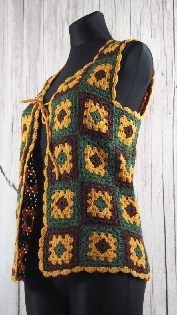 Świetna ręcznie wykonana wełniana kamizelka rodem z lat 70-tych.