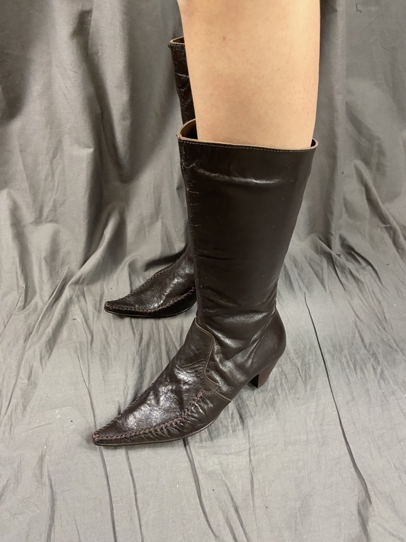 Skórzane hiszpańskie kozaki ala kowbojki. Z mięciutkie skóry. W kolorze ciemnoczekoladowym.