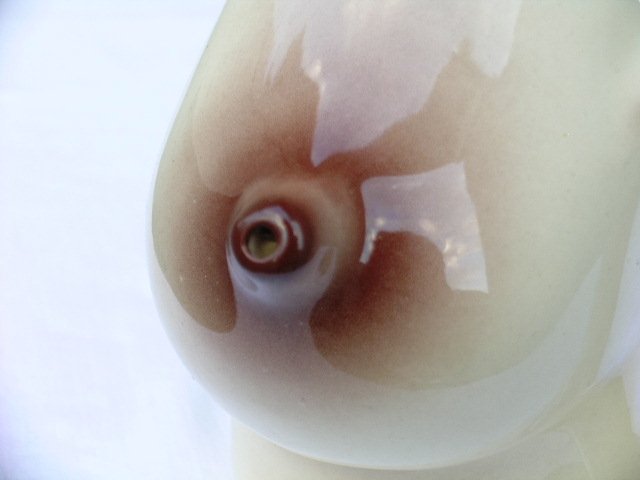 Prowokujący duży kubek, z którego pić można tylko w jeden sposób... Jedwabiste wykończenie powierzchni... Może tak się wyrażę: picie z tego kubka to czysta przyjemność :) Solidna porcelana, sygnowana Kernewek Cornwall England. Stabilny i wygodny. 13 x 12,5 x 13,5 cm. Stan zachowania bardzo dobry.