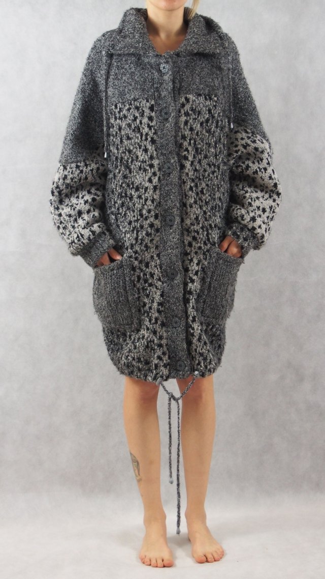 Kurtka/kardigan z akrylu 85% i lnu 15%. Obszerna, designerska, bardzo ciepła. Marki Horsan.