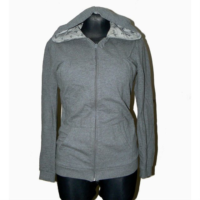 Szara kangurka z kapturem, zapinana na zamek.