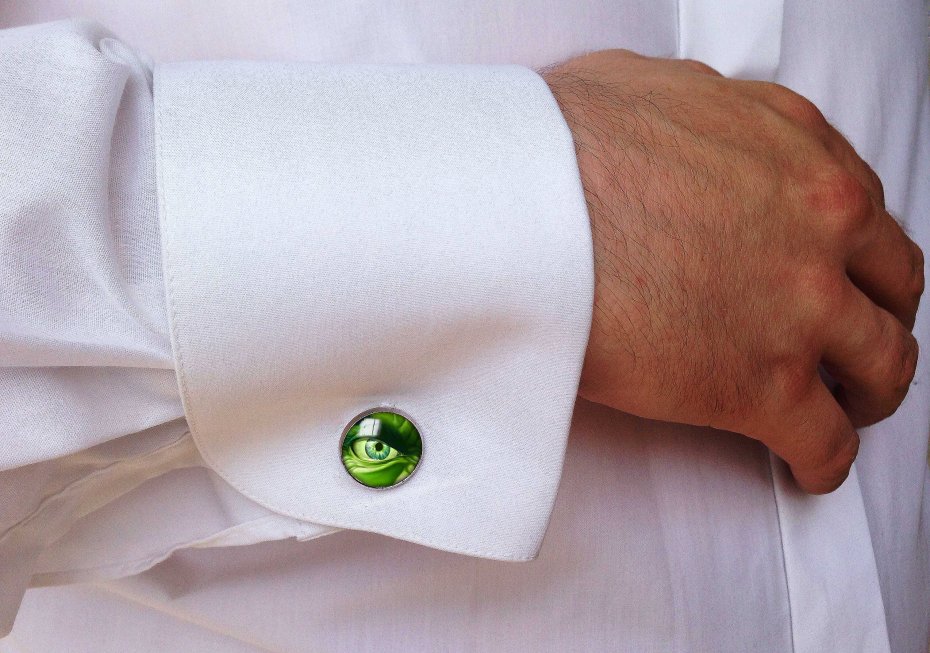 Ręcznie robione spinki do mankietów z wysokiej jakości grafiką pokrytą wypukłym, powiększającym szkiełkiem.