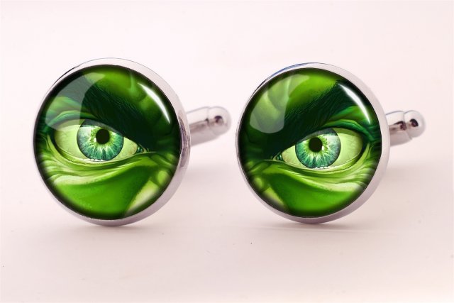 Ręcznie robione spinki do mankietów z wysokiej jakości grafiką pokrytą wypukłym, powiększającym szkiełkiem.