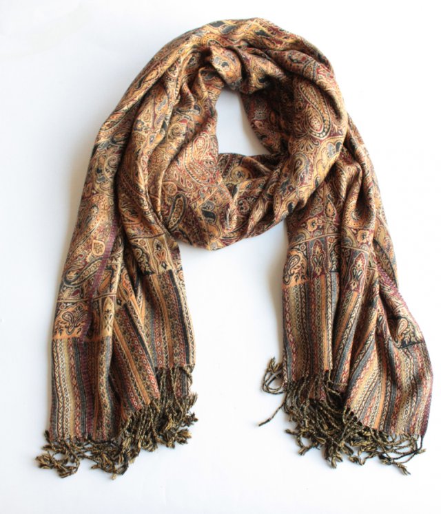 Duży szal we wzory typu paisley skandynawskiej marki Hultquist. Szal wykonano z wiskozy.