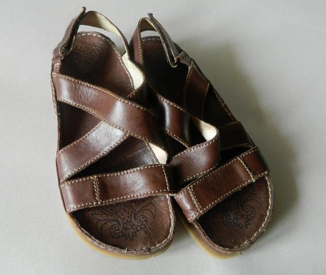 Wygodne sandały HUSH PUPPIES. Luzacki styl, świetne do szortów, sportowej mini, sukienki hippie... Rozmiar na bucie 38, fizycznie wypadają zdecydowanie mniejsze, są na stopę o długości max 23,5 cm. Długość całkowita (od koniuszka do koniuszka) to 24,3 cm. W całości wykonane ze skóry naturalnej, zapinane rzepem na pasku za piętą. Fason na TĘŻSZĄ stopę.