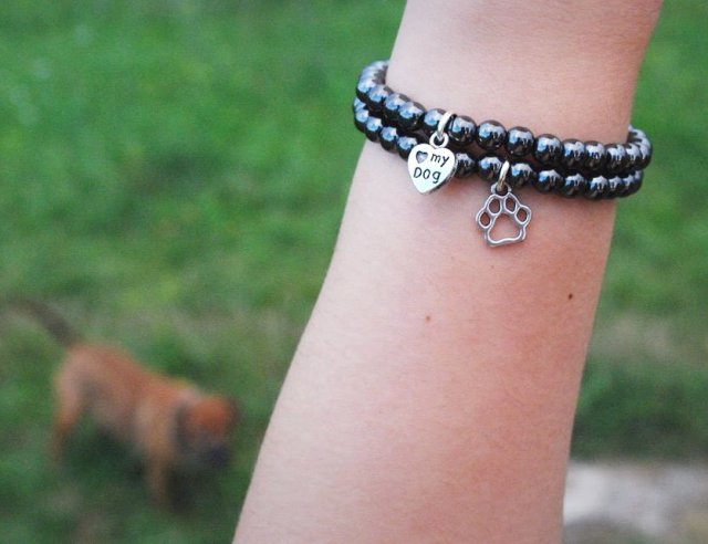 POMYSŁ NA PREZENT ;-) ... komplet 2 delikatnych bransoletek dla wielbicielki psów. bransoletki na solidnej lince elastycznej, wykonane z grafitowego hematytu (kuleczki 6mm) oraz uroczej, metalowej przekładki - serduszka ( łapka + love my dog) i łapki.... KOMPLET PASUJE NA standardowy NADGARSTEK - OBW. WEWNĘTRZNY: 16CM.... (na życzenie mogę wykona inny rozmiar) ...HEMATYT - Ułatwia wchłanianie żelaza. Reguluje nadciśnienie. Pomaga w dolegliwościach kręgosłupa. Budzi radość życia, dodaje odwagi i umacnia wolę.W astrologii przypisany jest znakom Barana i Skorpiona... ZOBACZ CAŁĄ KOLEKCJĘ! ... moja biżu zawsze podróżuje w ozdobnym opakowaniu handmade :D ...