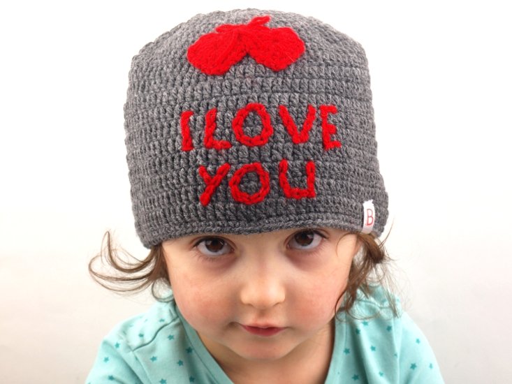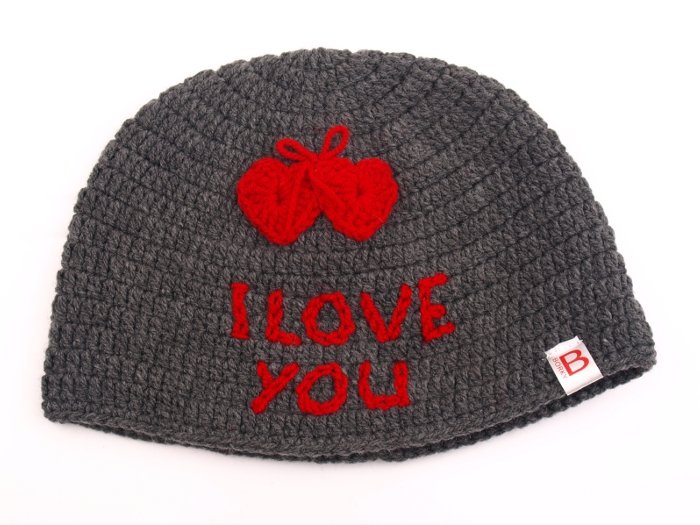 Szara czapka z wyznaniem. rozmiar: 50-52cm, podobne czapki dziergamy również na malutkie główki, na większe główki i całkiem duże głowy :) W celu zamówienia innego rozmiaru bądź koloru, prosimy o kontakt przez formularz kontaktowy. Zapraszamy!