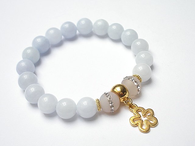 Bransoletka wykonana z kamieni naturalnych - jadeity [10mm] ,kuleczki agatów wysadzane cyrkoniami [10mm] oraz elementów w kolorze złota. Bransoletka na gumce silikonowej. Pasuje na nadgarstek 16-17cm. Biżuteria ozdobnie zapakowana. Możliwość dopasowania bransoletki do nadgarstka - wcześniej prosimy o kontakt