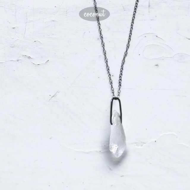 wisiorek ze srebra: naturalny surowy kryształ -nieregularna bryłka ok. 2,3 cm - przezroczysta przy końcu. Łańcuszek ze srebra z zapięciem ok. 53 cm.