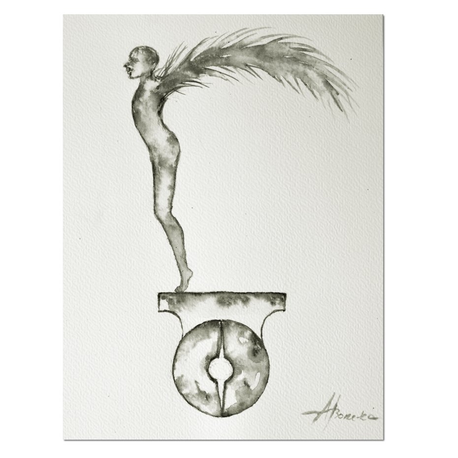 Czarno-biała grafika - oryginalny obraz malowany tuszem na papierze akwarelowym o gramaturze 300 g, w formacie 16,5 x 21,5