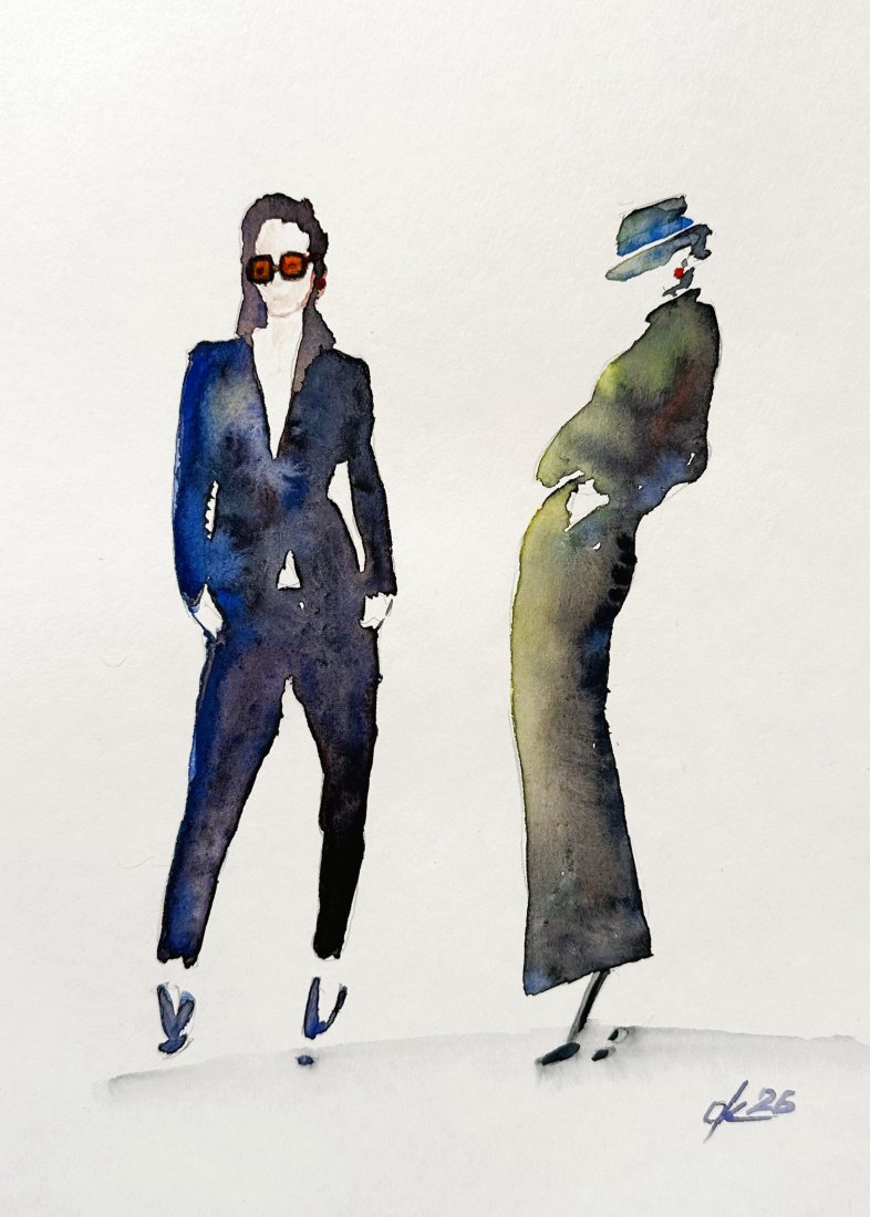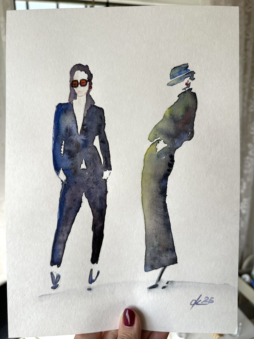 Ilustracja 2 modeli 30*21cm. Original Akwarela1