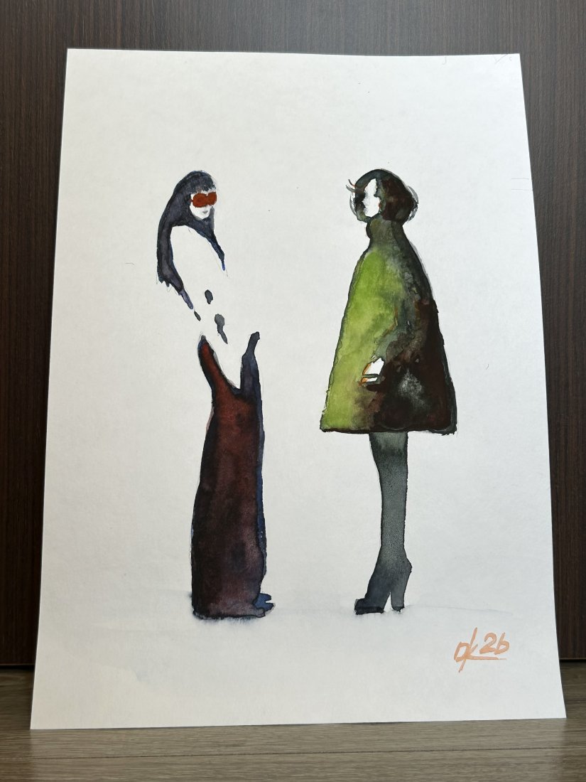 Ilustracja 2 modeli 30*21cm. Original Akwarela2