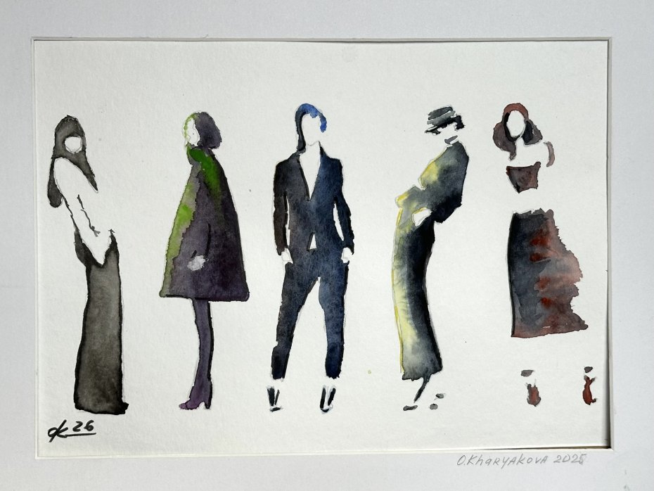 Ilustracja 5 modeli 30*21cm. Original Akwarela