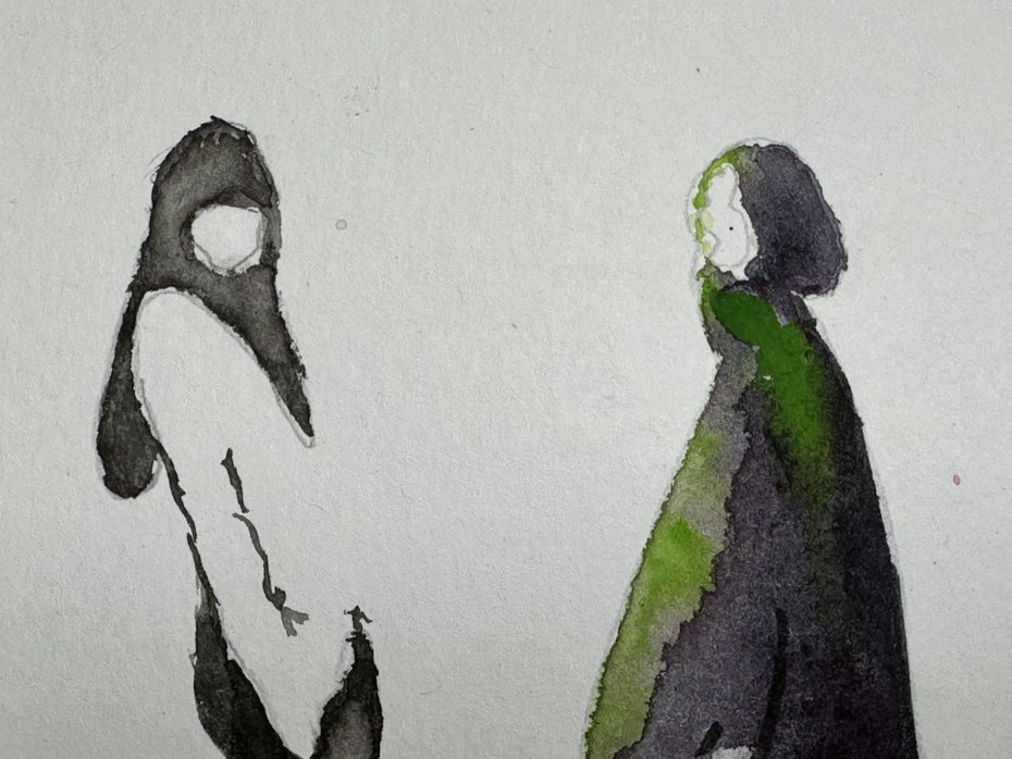 Rysunek wykonany akwarelami na wysokiej jakości papierze. Oryginał, sygnowany z przodu i z tyłu. Rodzaj farby: akwarela