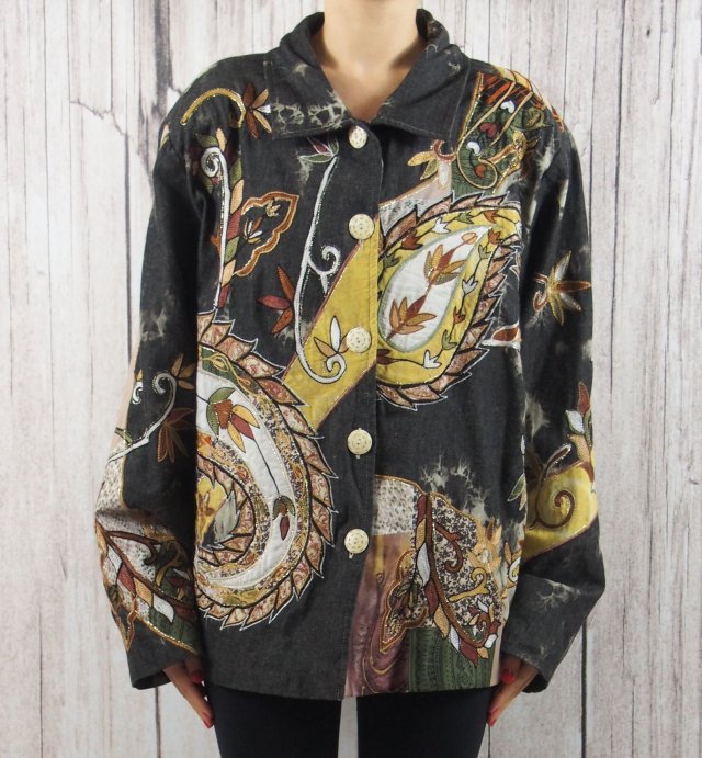 Przepiękna marynarka renomowanej marki Indigo Moon. Przepiękne hafty - wzory etno, cudowne metalowe guziczki, podszewka w paisleye. Marynarka tworzona z pasją i dużą dbałością o detale. Materiał: bawełna 58%, wiskoza 42%, podszewka: poliester.