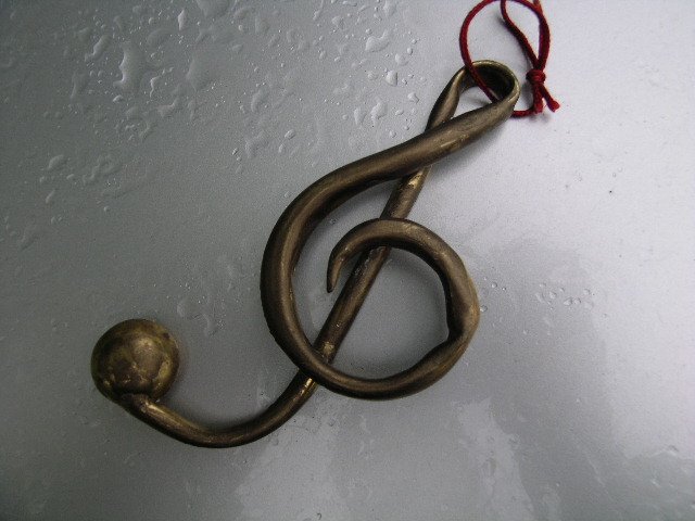 Metalowy,mosiądzowany Klucz Violinowy - zawieszka dekoracyjna; Duże wierne odwzorowanie Violinowego Klucza :)