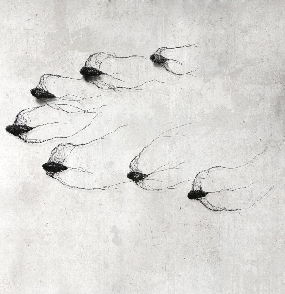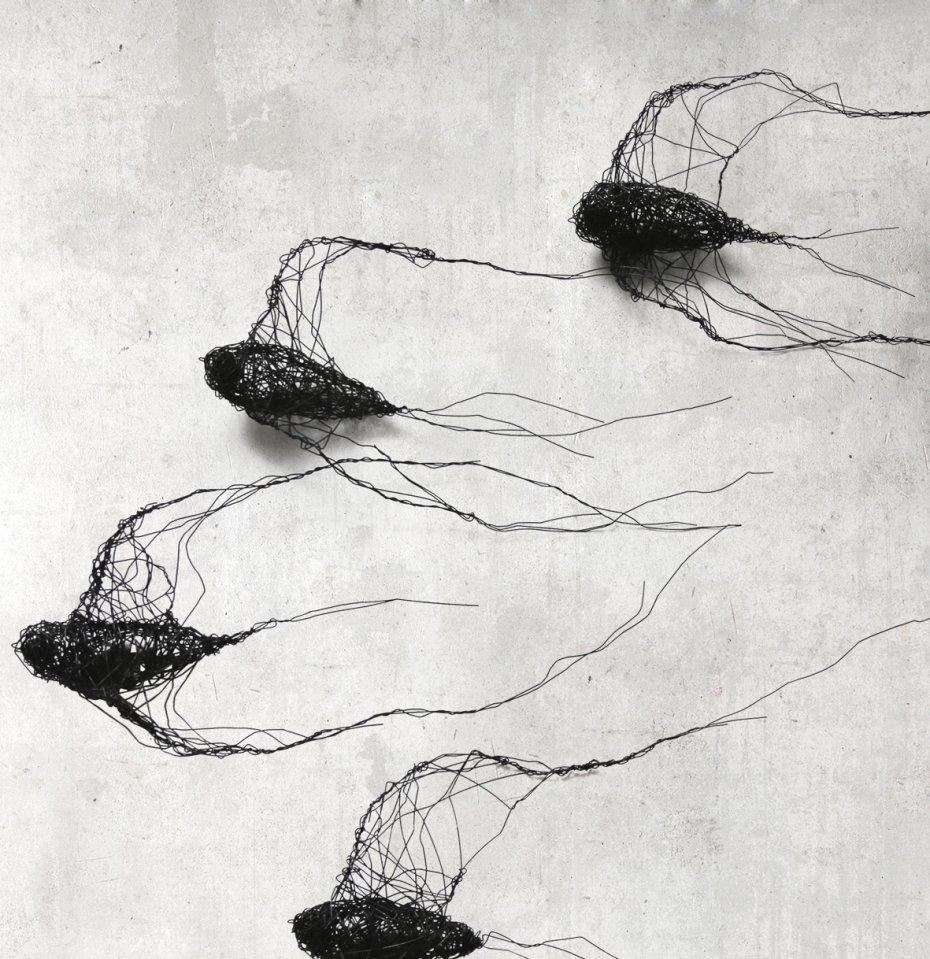 Jaskółki utkane z drutu tworzą klucz w przestrzeni wnętrza. Zasadnicze dla tej pracy jest pozbycie się tła na rzecz większej ekspresji. Uproszczenie poszerza możliwości interpretacyjne, natomiast redukcja wzmacnia siłę wyrazu.