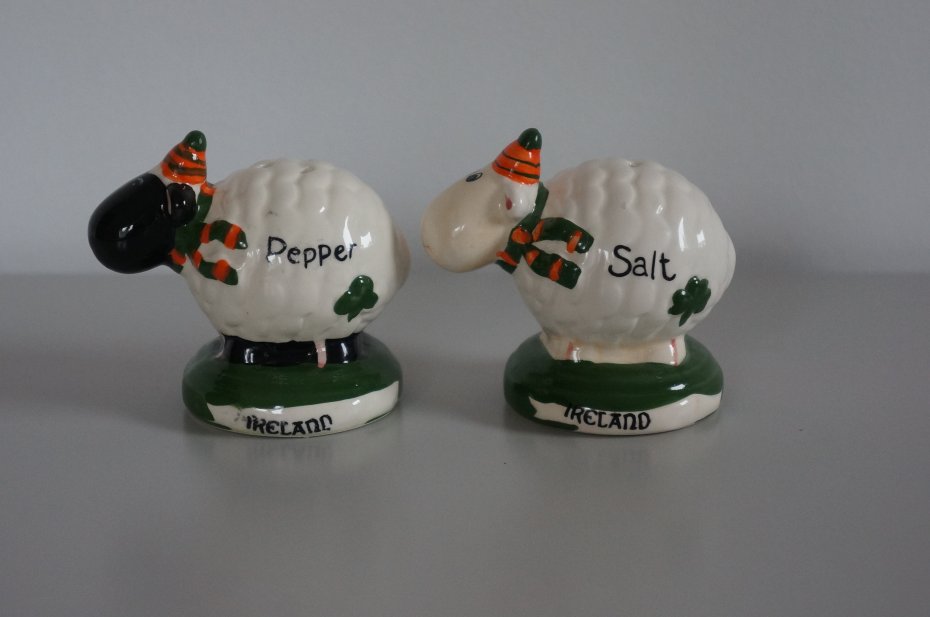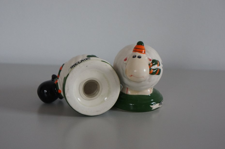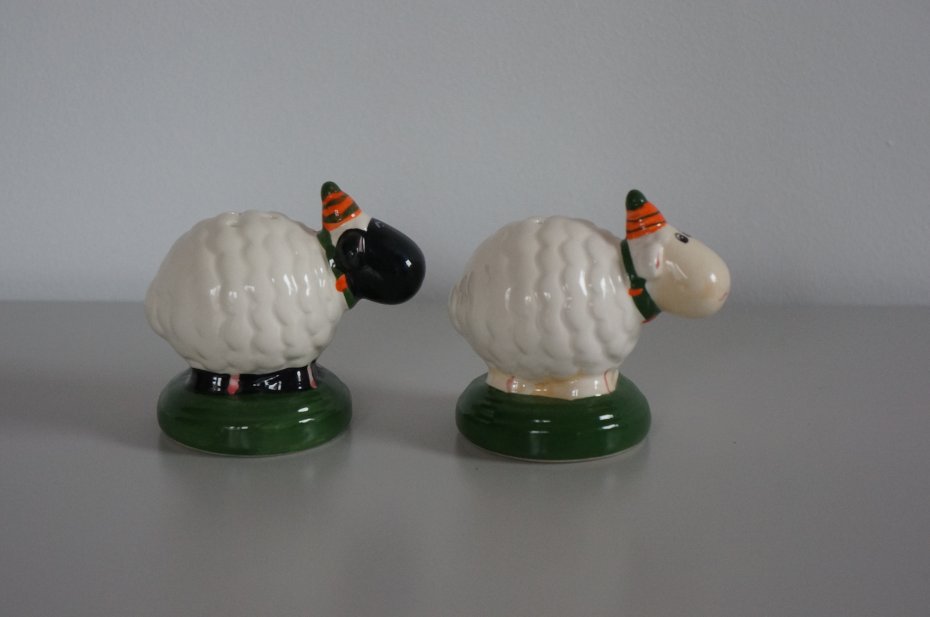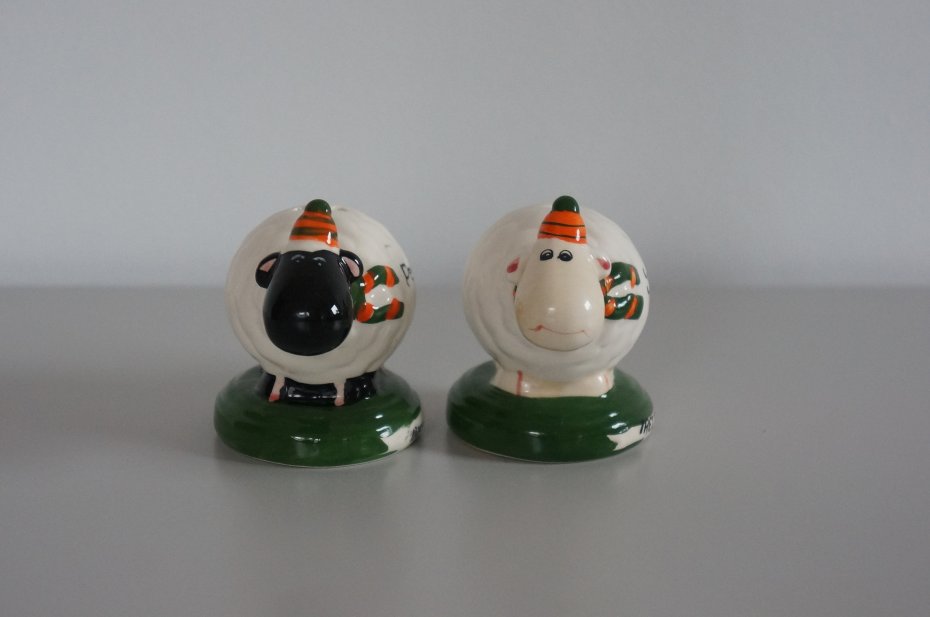 Ceramiczna solniczka i pieprzniczka w kształcie uroczych owieczek. Nowe, nieużywane. Stan bardzo dobry.