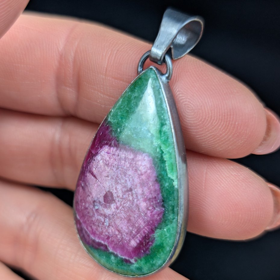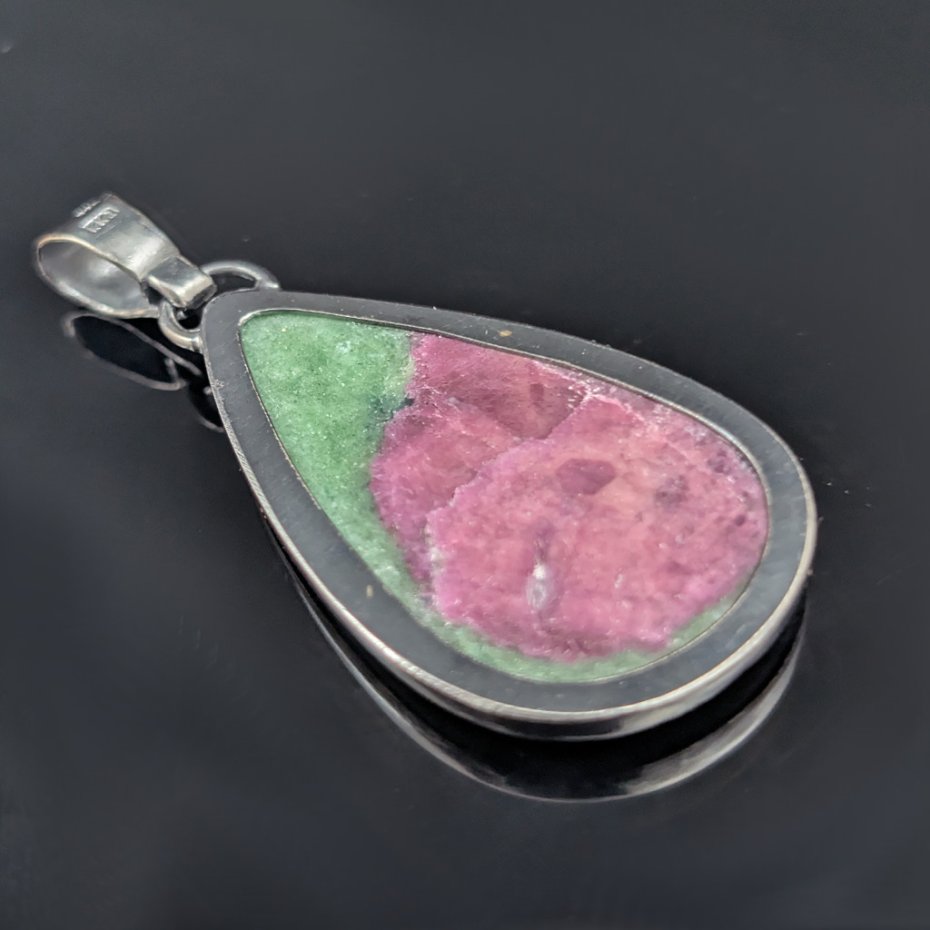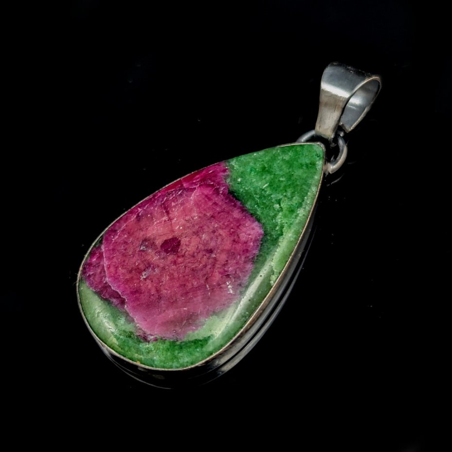 Piękny okaz naturalnego rubinu na zielonym zoisycie, piękna iryzacja rubinu, trudna do uchwycenia na zdjęciu. Oprawa srebra próby 925, oksydowana i przecierana. Waga wisiora 13 gramów. Wymiary całej oprawy 40 x 25 mm. Z krawatką długość 52 mm. Wisior zostanie zapakowany w ozdobne pudełeczko. Polecam!