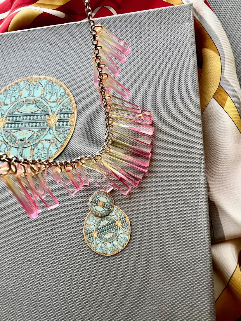Tagi: #biżuteria srebro złoto lód, #italy lodowy szklany włoski, #naszyjnik glass pink acrylic, #vintage moda vintage